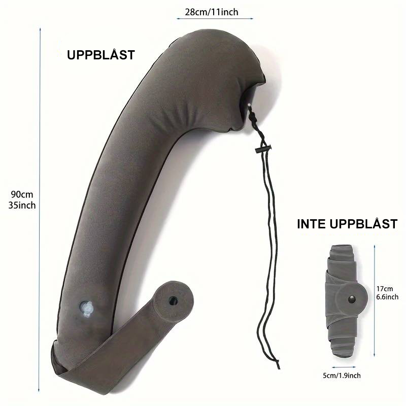 Denna resenackkudde är både bekväm och praktisk. Den är enkel att blåsa upp, kompakt och portabel, vilket gör den perfekt för användning i bil, flygplan och på kontoret. Idealisk för att stödja din nacke och ge extra komfort under resor eller långa arbetspass.