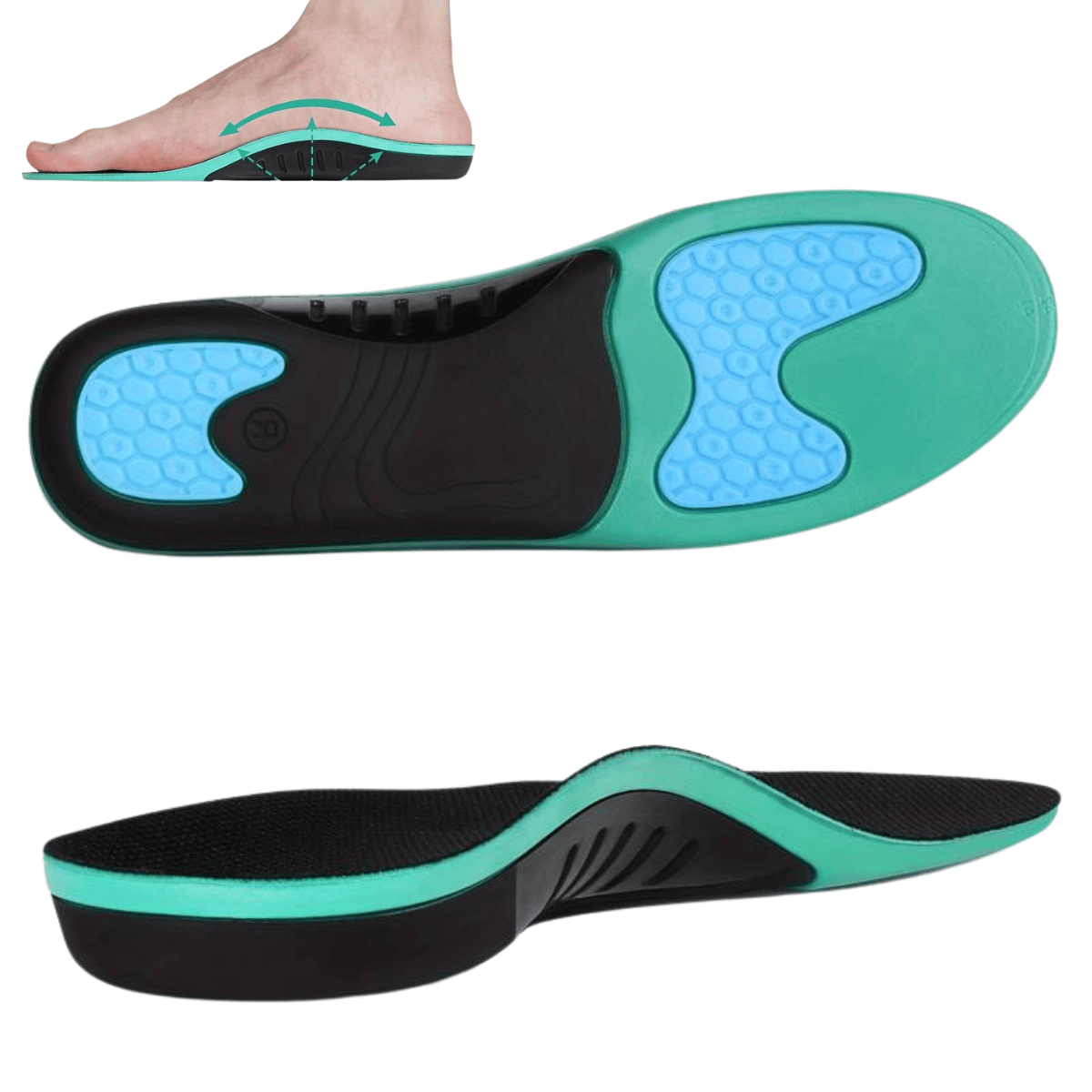 Upplever du fotrelaterad smärta och obehag? Våra stödjande fotvalvsinlägg kombinerar avancerad teknologi med överlägsen komfort för att ge dig lindring. Den högkvalitativa gelkudden absorberar stötar och minskar belastningen på hälen, vilket ger avlastning för hälsmärta och plantar fasciit. Dessutom ger inlägget stöd och komfort för fotvalvet, vilket minskar trycket och ger en behaglig känsla vid varje steg.