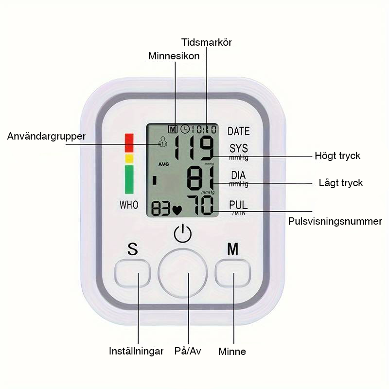 Digital Blodtrycksmätare - Minnesfunktion för 99 avläsningar