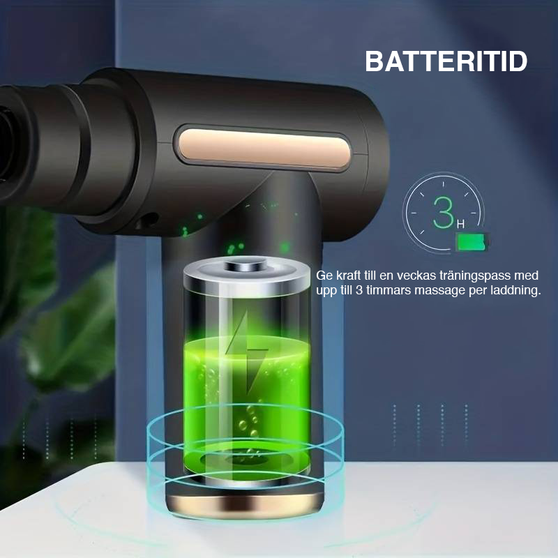 Denna kompakta massagepistol erbjuder kraftfulla vibrationer för att främja avslappning och återhämtning. Med flera hastighetsinställningar kan du anpassa behandlingen efter dina behov och preferenser. Den är lätt och enkel att använda, vilket gör den perfekt för användning hemma eller på språng.