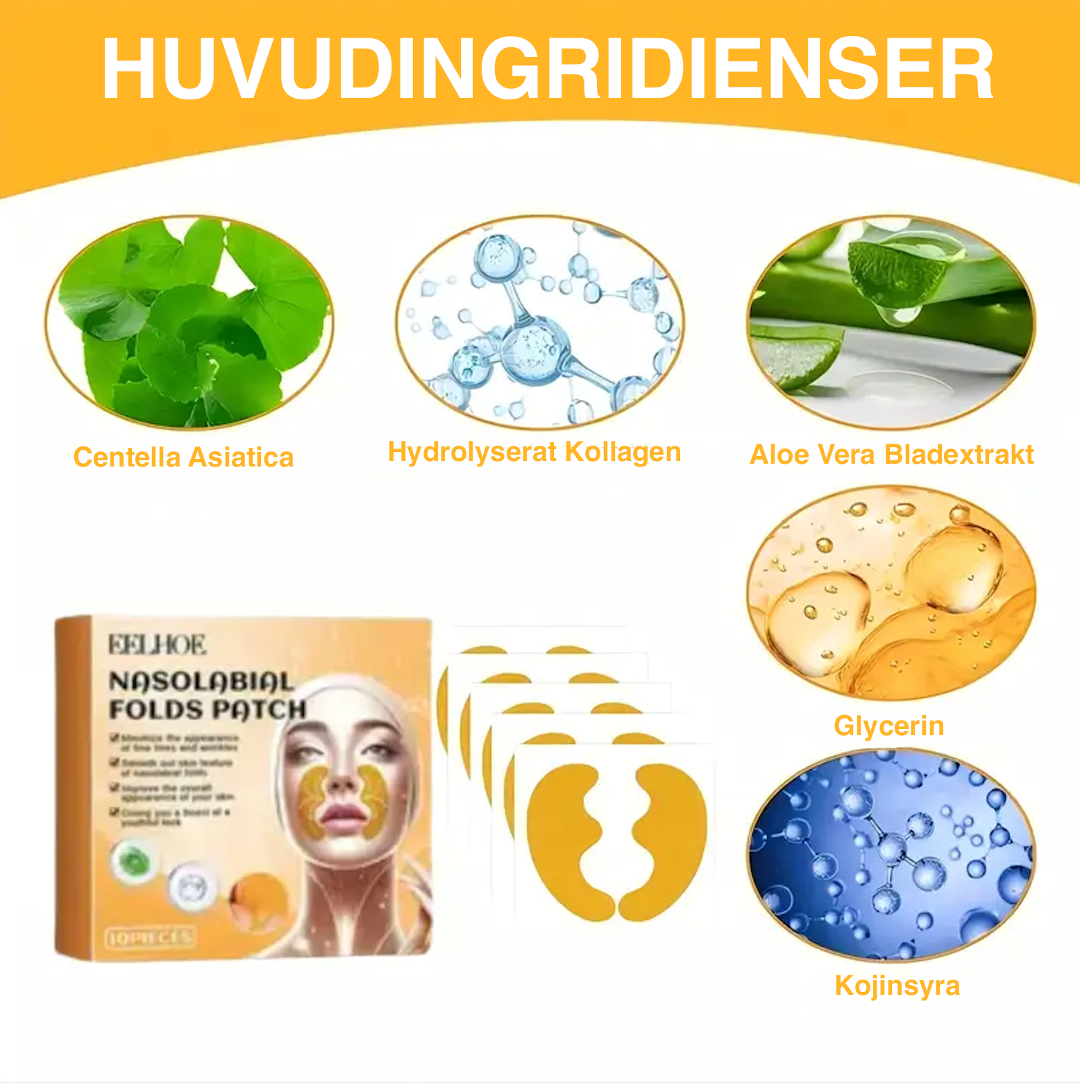 Dessa 10 st rynkutjämnande plåster för näsa och läppar är den perfekta lösningen för att motverka rynkor och fina linjer. Den återfuktande hudvårdslösningen är alkoholfri och skonsam mot huden, vilket gör den idealisk för alla hudtyper, även känslig hud. Plåstren är designade för att effektivt släta ut och reducera synliga rynkor runt näsa och läppar, och ger huden en mer ungdomlig och jämnare struktur. Använd dem regelbundet för att uppnå synliga resultat och en fräsch, återfuktad hud som känns mjuk och smidig. Enkel att använda och ett effektivt tillskott till din hudvårdsrutin.
